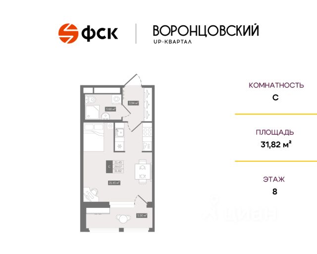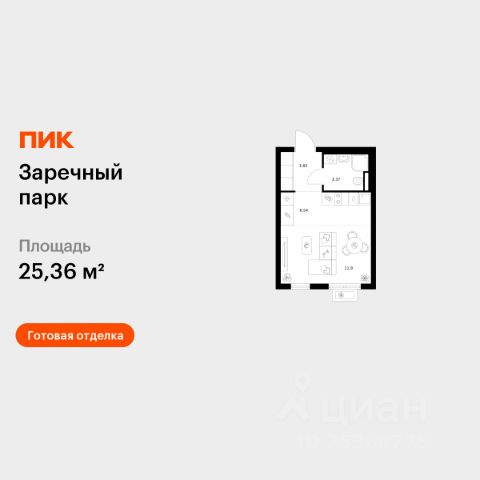 В продаже — уютная и компактная студия (21,2 м²) на 7 этаже корпуса 1.3 в новом жилом комплексе "Академик" от надёжного застройщика Холдинга "РСТИ" (Росстройинвест).