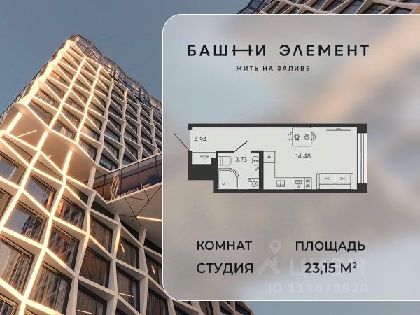 Однокомнатная квартира-студия с предчистовой отделкой в ЖК "ЛЕГЕНДА Васильевского" на 2 этаже. Общая площадь: 28.05 кв.м., площадь гостиной 20.21 кв.м., из которых 5 кв.м. выделено под кухонную зону. Все окна выходят на одну сторону. В квартире один совмещенный санузел. Высота потолков 2.72 м. "ЛЕГЕНДА Васильевского" жилой квартал в минутной доступности от Финского залива, главного креативного хаба Санкт-Петербурга Севкабель Порта и других точек притяжения. Современные инженерные и технические решения, повышающие качество жизни TechnoBox включают в себя: стационарный и удаленный контроль дома, систему вентиляции Air Design - здоровое дыхание без лишнего шума, мультисервисную сеть, объединяющую коммуникационные системы, удаленное управление электроприборами, контроль отопления в каждом помещении, поддерживающий оптимальный температурный баланс во время "холодного" периода", датчики протечки, датчик открытия входной двери. Мультисервисная сеть (МСС) объединяет ключевые слаботочные системы дома, задавая им единый высокий стандарт работы, обеспечивая надёжность их функционирования и управления. Квартира готова к декорированию. Застройщиком сделана шумоизоляция; стены подготовлены для отделки; проведена электрика с учетом рекомендаций по расстановке мебели и бытовой техники; выровнен пол. В каждой квартире установлена взломостойкая входная дверь, окна со специальным термоизолированным алюминиевым профилем. Двор жилого комплекса "ЛЕГЕНДА Васильевского" закрыт. Проект состоит из шести разноформатных корпусов с ритмичными фасадами в духе пост-конструктивизма. Геометрия жилого комплекса состоит из четко простроенных осей, чередующих открытые пространства и объемы корпусов, каждый из которых обладает своим визуальным кодом индивидуальным рисунком фасада и цветовой палитрой. Корпуса образуют периметр с общественными пространствами: площадью с кафе, магазинами и пешеходным променадом с детскими игровыми хабами, местами для спокойного отдыха и workout-зоной. На территории комплекса предусмотрены теплый подземный паркинг и два наземных 4-х этажных паркинга.