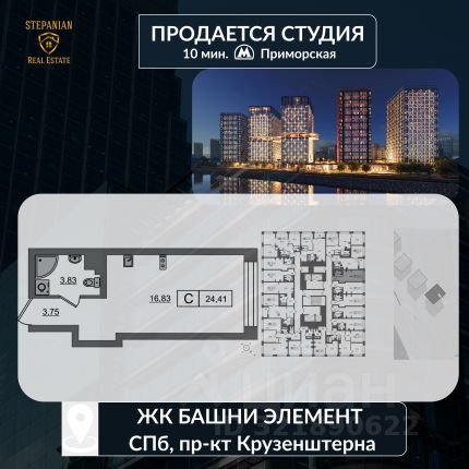 1-комн. квартира-студия с предчистовой отделкой в ЖК "LEGENDA Васильевского" на 2 этаже. Общая площадь: 28.85 кв.м., площадь гостиной 21.06 кв.м., из которых 6.3 кв.м. выделено под кухонную зону. Все окна выходят на одну сторону. В квартире один совмещенный санузел. Высота потолков 2.7 м. "LEGENDA Васильевского" жилой квартал в минутной доступности от Финского залива, главного креативного хаба Санкт-Петербурга Севкабель Порта и других точек притяжения. Современные инженерные и технические решения, повышающие качество жизни TechnoBox включают в себя: стационарный и удаленный контроль дома, систему вентиляции Air Design - здоровое дыхание без лишнего шума, мультисервисную сеть, объединяющую коммуникационные системы, удаленное управление электроприборами, контроль отопления в каждом помещении, поддерживающий оптимальный температурный баланс во время "холодного" периода", датчики протечки, датчик открытия входной двери. Мультисервисная сеть (МСС) объединяет ключевые слаботочные системы дома, задавая им единый высокий стандарт работы, обеспечивая надёжность их функционирования и управления. Квартира готова к декорированию. Застройщиком сделана шумоизоляция; стены подготовлены для отделки; проведена электрика с учетом рекомендаций по расстановке мебели и бытовой техники; выровнен пол. В каждой квартире установлена взломостойкая входная дверь, окна со специальным термоизолированным алюминиевым профилем. Двор жилого комплекса "LEGENDA Васильевского" закрыт. Проект состоит из шести разноформатных корпусов с ритмичными фасадами в духе пост-конструктивизма. Геометрия жилого комплекса состоит из четко простроенных осей, чередующих открытые пространства и объемы корпусов, каждый из которых обладает своим визуальным кодом индивидуальным рисунком фасада и цветовой палитрой. Корпуса образуют периметр с общественными пространствами: площадью с кафе, магазинами и пешеходным променадом с детскими игровыми хабами, местами для спокойного отдыха и workout-зоной. Срок сдачи 4 квартал 2027 года. На территории комплекса предусмотрены теплый подземный паркинг и два наземных 4-х этажных паркинга.