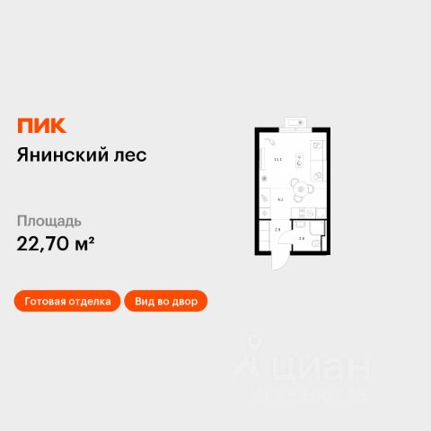 Продаётся квартира-студия площадью 24,6 кв.м на 13 этаже 15 этажного дома (Корпус 1, Секция 1) проекта ПИК Янинский лес. Светлый просторный подъезд на уровне земли, функциональная планировка, большие окна, c отделкой. Жилой квартал "Янинский лес" возводится в районе Янино-1 Ленинградской области. Автобусная остановка находится в 3 минутах пешком. Проект расположен вплотную к восточной границе Санкт-Петербурга - в 4 минутах от КАД. До метро "Ладожская" - 23 минуты на общественном транспорте. До исторического центра города можно доехать за 25 минут на автомобиле. "Янинский лес" - масштабный проект из 32 жилых корпусов, где будет всё для комфортной жизни. Здесь предусмотрены надземные паркинги, откроются детские сады, школа и поликлиника. Кроме этого, появятся места, в которых можно проводить свободное время: ледовая арена и торговый центр площадью больше 3000 м². Жилой район строится по всем правилам ПИК-Стандарта: в зелёных дворах-парках появятся современные детские и спортивные площадки, пешеходный бульвар и другие места для отдыха. На первых этажах разместятся магазины, кафе и другие сервисы. Во дворах не будет автомобилей, а для гостей предусмотрены парковочные места. Проект окружают лесные массивы. В пешей доступности находится Ржевский лесопарк: летом там можно гулять и собирать грибы, а зимой кататься на лыжах. Также рядом расположен памятник природы Колтушские высоты - парк с обустроенными экотропами и веломаршрутом. А главное место притяжения местных жителей - озеро с обустроенным местом для пикников. Артикул 1048781 (Застройщик ООО "СПЕЦИАЛИЗИРОВАННЫЙ ЗАСТРОЙЩИК"ЭКСТРАГРАД") [cn_sbp_1828238]