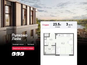 Продается студия в ЖК "Пулково Лейк" на 2 этаже. Общая площадь составляет 24.80 кв. м. Квартира с чистовой отделкой. Жилой комплекс "Пулково Лейк" располагается по адресу Санкт-Петербург, Московский. Пулково Лейк - проект малоэтажной застройки на берегу озера на границе Московского и Пушкинского районов. Дома высотой всего 4 этажа, квартиры от уютных студий до трехкомнатных квартир для большой семьи. Широчайший выбор планировок, включая квартиры с мастер-спальнями, патио, каминами, саунами, двухуровневые квартиры. Школа, детские сады, парк на берегу озера и выезды на Пулковское и Петербургское шоссе. Расположение: • 5 мин на авто до Аэропорта Пулково; • 10 мин на авто до станций метро "Московская; • 10-15 мин на авто до городов Пушкина, Павловска и Гатчины; • 20 мин на авто до центра Санкт-Петербурга. Квартиры в проекте сдаются с предчистовой и чистовой отделкой Соmfоrt Stоnе и Соmfоrt Wооd по современным стандартам - Вы можете сами выбрать отделку, подходящую именно Вам. Дома оборудованы самыми современными инженерными системами и "Умным домом". В рамках проекта будет построена современная школа на 925 мест и 2 детских сада на 160 и 240 мест, выезды на Пулковское и Петербургское шоссе, а также храм рядом со сквером "Пулковский рубеж". Общественное пространство вдоль берега озера превратится во всесезонный парк, в котором найдется место для любых активностей от пробежек, катания на САПах и велосипедах до отдыха в шезлонгах и любования закатом солнца. Зимой будет работать каток, проложен лыжный маршрут, предусмотрено место для новогодней елки и горок для детей. Для Ваших питомцев - площадка для выгула собак. Преимущества: • Высота потолков от 2,6 до 4,5 м; • Уникальные планировки; • Парк на берегу озера; • Система "Умный дом"; • Дворы без машин; • Колясочная в парадной; • Видеонаблюдение в холлах, на первом этаже, в лифтах и в паркингах. Успейте приобрести квартиру на выгодных условиях! Чтобы узнать подробности, обращайтесь за консультацией по телефону.