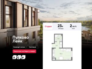 Продается студия в ЖК "Пулково Лейк" на 2 этаже. Общая площадь составляет 23.00 кв. м. Квартира с чистовой отделкой. Жилой комплекс "Пулково Лейк" располагается по адресу Санкт-Петербург, Московский. Пулково Лейк - проект малоэтажной застройки на берегу озера на границе Московского и Пушкинского районов. Дома высотой всего 4 этажа, квартиры от уютных студий до трехкомнатных квартир для большой семьи. Широчайший выбор планировок, включая квартиры с мастер-спальнями, патио, каминами, саунами, двухуровневые квартиры. Школа, детские сады, парк на берегу озера и выезды на Пулковское и Петербургское шоссе. Расположение: • 5 мин на авто до Аэропорта Пулково; • 10 мин на авто до станций метро "Московская; • 10-15 мин на авто до городов Пушкина, Павловска и Гатчины; • 20 мин на авто до центра Санкт-Петербурга. Квартиры в проекте сдаются с предчистовой и чистовой отделкой Соmfоrt Stоnе и Соmfоrt Wооd по современным стандартам - Вы можете сами выбрать отделку, подходящую именно Вам. Дома оборудованы самыми современными инженерными системами и "Умным домом". В рамках проекта будет построена современная школа на 925 мест и 2 детских сада на 160 и 240 мест, выезды на Пулковское и Петербургское шоссе, а также храм рядом со сквером "Пулковский рубеж". Общественное пространство вдоль берега озера превратится во всесезонный парк, в котором найдется место для любых активностей от пробежек, катания на САПах и велосипедах до отдыха в шезлонгах и любования закатом солнца. Зимой будет работать каток, проложен лыжный маршрут, предусмотрено место для новогодней елки и горок для детей. Для Ваших питомцев - площадка для выгула собак. Преимущества: • Высота потолков от 2,6 до 4,5 м; • Уникальные планировки; • Парк на берегу озера; • Система "Умный дом"; • Дворы без машин; • Колясочная в парадной; • Видеонаблюдение в холлах, на первом этаже, в лифтах и в паркингах. Успейте приобрести квартиру на выгодных условиях! Чтобы узнать подробности, обращайтесь за консультацией по телефону.