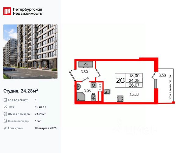Продается уютная студия от застройщика в жилом комплексе "Парадный ансамбль" в престижном Московском районе. До метро можно добраться на транспорте всего за 20 минут. Удобная, классическая, функциональная европланировка, вместительная прихожая 3.11 м². Общая площадь студии - 24.26 м², жилая 18.14 м², высота потолка 3.07 м. Квартира продается с отделкой "NORD LINE WHITE". Что особенного в ЖК "Парадный ансамбль"? • Инновационный Лицей Setl с оригинальной архитектурной концепцией и уникальной образовательной средой • Масштабное малоэтажное строительство в престижном Московском районе • Рекреационные зоны: парадный парк в центре квартала, ручей с собственной набережной, центральная площадь, ресторанный комплекс и пешеходный бульвар • Фасады из керамогранита и кирпича с яркими и акцентными входными группами • Две самые большие площадки Setl Kids и Setl Sport • Уникальные квартиры.High Flat на последних этажах, палисадники у квартир на первом этаже, семейные секции, квартиры с саунами и окном в ванной