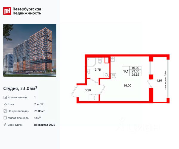 Строим кварталы для жизни с заботой о будущем. Предлагается квартира студия комфорт-класса 25,47 кв.м в корпусе 33 на 8 этаже, в ЖК "Новое Колпино"