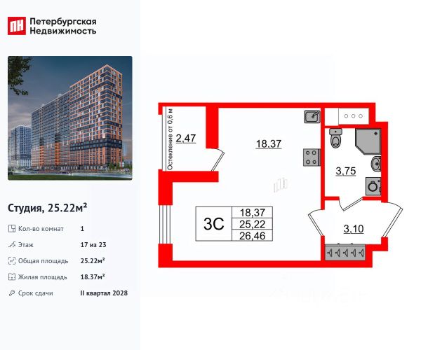 Номер в базе: 7063500 Продается квартира-студия в ипотеку в новостройке рядом с метро Обухово.