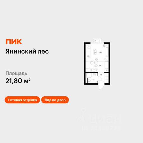 Продаётся квартира-студия площадью 20,9 кв.м на 6 этаже 15 этажного дома (Корпус 4, Секция 1) проекта ПИК Янинский лес. Светлый просторный подъезд на уровне земли, функциональная планировка, большие окна, c отделкой. Жилой квартал "Янинский лес" возводится в районе Янино-1 Ленинградской области. Автобусная остановка находится в 3 минутах пешком. Проект расположен вплотную к восточной границе Санкт-Петербурга - в 4 минутах от КАД. До метро "Ладожская" - 23 минуты на общественном транспорте. До исторического центра города можно доехать за 25 минут на автомобиле. "Янинский лес" - масштабный проект из 32 жилых корпусов, где будет всё для комфортной жизни. Здесь предусмотрены надземные паркинги, откроются детские сады, школа и поликлиника. Кроме этого, появятся места, в которых можно проводить свободное время: ледовая арена и торговый центр площадью больше 3000 м². Жилой район строится по всем правилам ПИК-Стандарта: в зелёных дворах-парках появятся современные детские и спортивные площадки, пешеходный бульвар и другие места для отдыха. На первых этажах разместятся магазины, кафе и другие сервисы. Во дворах не будет автомобилей, а для гостей предусмотрены парковочные места. Проект окружают лесные массивы. В пешей доступности находится Ржевский лесопарк: летом там можно гулять и собирать грибы, а зимой кататься на лыжах. Также рядом расположен памятник природы Колтушские высоты - парк с обустроенными экотропами и веломаршрутом. А главное место притяжения местных жителей - озеро с обустроенным местом для пикников. Артикул 1049722 (Застройщик ООО "СПЕЦИАЛИЗИРОВАННЫЙ ЗАСТРОЙЩИК"ЭКСТРАГРАД") [cn_sbp_1848307]