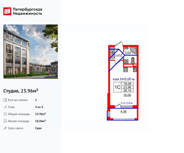 Продается уютная студия от застройщика в жилом комплексе "Дворцовый фасад" в неповторимом Петродворцовом районе. До метро можно добраться на транспорте всего за 25 минут. Удобная, классическая, функциональная европланировка, вместительная прихожая 3.15 м². Общая площадь студии - 24.15 м², жилая 18 м², высота потолка 2.75 м. Квартира продается с отделкой "NORD LINE WHITE". Что особенного в ЖК "Дворцовый фасад"? • В окружении дворцово-парковых ансамблей: Стрельна, Константиновский дворец, Петергоф, парк Новознаменка и Сосновая поляна, Шунгеровский лесопарк • Два собственных парка: парадный верхний для спокойного отдыха, нижний для активных занятий • Проект, соответствующий стандартам экологичного строительства, энергоэффективности, экономии и комфорта • Квартиры с саунами, возможностью установки камина и палисадниками • Малоэтажный жилой комплекс: всего 4 этажа, более половины квартир с увеличенной высотой потолка: от 3 до 5,5 м Продам квартиру-студию в ипотеку в новостройке в районе Петродворцовый в Санкт-Петербурге.