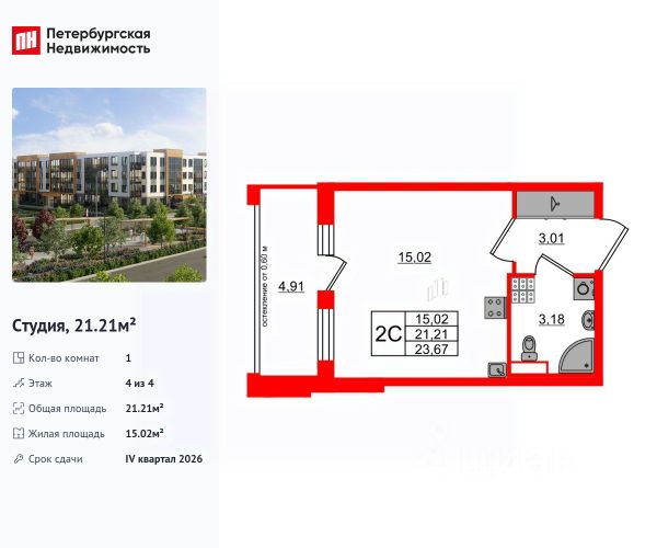 Продается 1-комн. квартира-студия с отделкой в ЖК "ALL In 3.0" на 9 этаже. Общая площадь: 27.3 кв.м. Высота потолков 2.72 м. Дом монолитный, черырехподъездный, переменной этажности, от 11 до 12 этажей. Квартира находится в 1-й секции высотой 12 этажей в корпусе 1. На этаже 14 квартир. В подъезде 1 пассажирский и 1 грузовой лифт. Начало строительства - 2 квартал 2017 года. В настоящее время строительство завершено, дом сдан во 2 квартале 2021 года. Оформление сделки по договору купли-продажи. Жилой комплекс "Аквилон All in 3.0" — это 12-этажный дом комфорт-класса. При покупке каждый покупатель получает не только квартиру, но и сертификаты на приобретение мебели и техники. При проектировании квартир используется принцип "Разумные метры" — места для систем хранения и гардеробных, классические и европейские планировки с объединенной кухней-гостиной, остеклённые во всю высоту балконы и лоджии глубиной 1,2 метра. Дом возводится по стандарту Э4, в основе которого экономия, экологичность, эргономика и энергоэффективность. В каждой квартире будут установлены интеллектуальная система управления домом inHOME 3.0, оборудование для механической очистки воды, комплексная система защиты от шума SOUNDSTOP, клапаны инфильтрации воздуха VENT-IN и широкоформатные окна по стандарту LIGHT-IN для достижения максимальной инсоляции в квартире. На огороженной охраняемой территории под видеонаблюдением разместится собственный парк площадью 4,2 Га с беседками и зонами отдыха, универсальными спортивными и современными детскими площадками. На первых этажах дома планируются коммерческие помещения, в которых будут все необходимые товары и услуги. Для резидентов комплекса предусмотрены детский клуб "Аквилон KIDS", подземный паркинг и сити-боксы с доступом на лифте. Вблизи ЖК расположены магазины, школы, детские сады, гипермаркеты и торгово-развлекательные центры. Аккредитация в банках: ОАО "Альфа-Банк", ПАО Банк "ВТБ", "Сбербанк России", ПАО Банк "ФК Открытие", ПАО АКБ "Металлинвестбанк" и других. #zmCfbo Продается квартира-студия в ипотеку в новостройке в районе Пушкинский в Санкт-Петербурге.