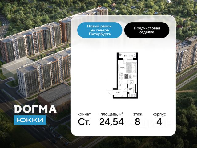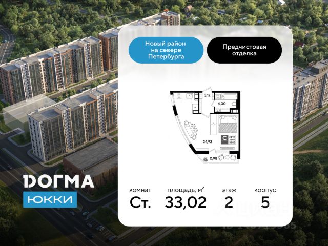 В продаже студия от застройщика ЖК "Догма Юкки" в Ленинградской области. Срок сдачи: 4 кв. 2028, общей площадью 29.80 кв.м., на 1 этаже. "Догма Юкки" - это квартал с доступной социальной инфраструктурой. Жилой комплекс расположен в Ленинградской области, к северу от Санкт-Петербурга. В районе благоприятная экологическая обстановка, рядом находятся каскады озер, Осиновая роща, усадьба и экотропа. Локация комплекса удобна для выезда в город, поблизости есть съезд на Выборгское шоссе и КАД, в 20 минутах езды - железнодорожная станция "Парголово", станция метро "Парнас". Уютный, зеленый район, расположенный неподалеку от г. Санкт-Петербурга Удобное расположение, 2 минуты до КАД Видовые квартиры Просторные светлые парадные с отделкой в скандинавском стиле Во дворах много зелени и мест для отдыха с гамаками и шезлонгами Игровые площадки для детей разных возрастов Спортивные зоны с уличными тренажёрами Пространство для занятий йогой Место для игры в настольный теннис 2 детских сада и школа на территории квартала Многоуровневые паркинги с системой видеонаблюдения Собственная котельная Приобрести квартиру можно одним из способов: - ипотека (стандартная, семейная, военная, IT) - рассрочка до конца строительства - оплата наличными - дистанционная покупка Позвоните сейчас и забронируйте квартиру по выгодным условиям!