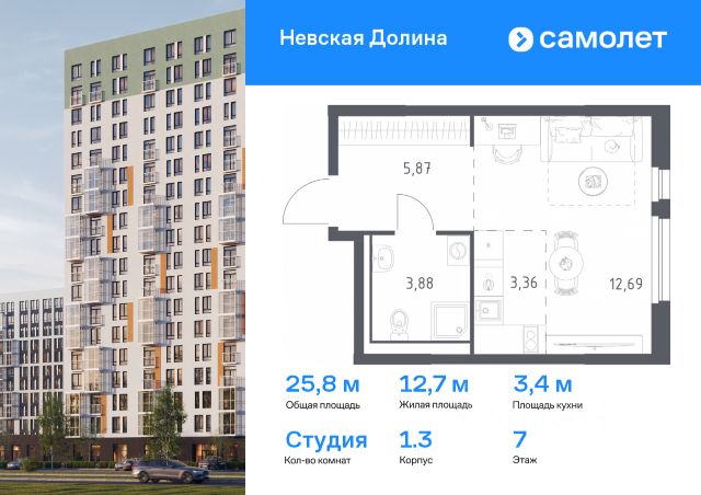Продаётся квартира - студия от застройщика.