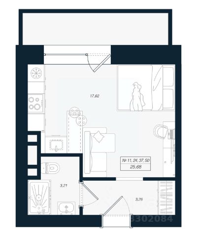 Продаётся студия в строящемся доме (Феникс), срок сдачи: I-кв. 2027, общей площадью 25.68 кв.м., на 5 этаже.
