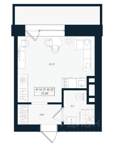Продаётся студия в строящемся доме (Феникс), срок сдачи: I-кв. 2027, общей площадью 22.88 кв.м., на 5 этаже.