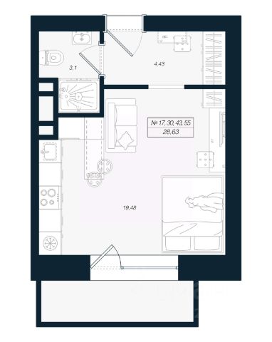 Продаётся студия в строящемся доме (Феникс), срок сдачи: I-кв. 2027, общей площадью 28.63 кв.м., на 4 этаже.