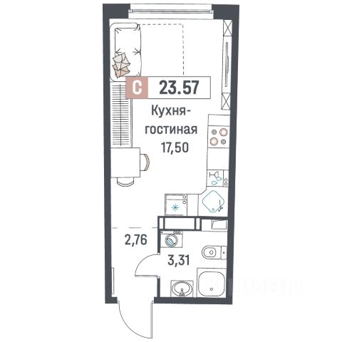 Продается 1-комн. квартира-студия с отделкой в ЖК "Аквилон RIVA" на 3 этаже. Общая площадь: 26.38 кв.м., площадь гостиной 17.24 кв.м., из которых 5 кв.м. выделено под кухонную зону. Все окна выходят на одну сторону. В квартире один балкон, один совмещенный санузел. Высота потолков 2.73 м.