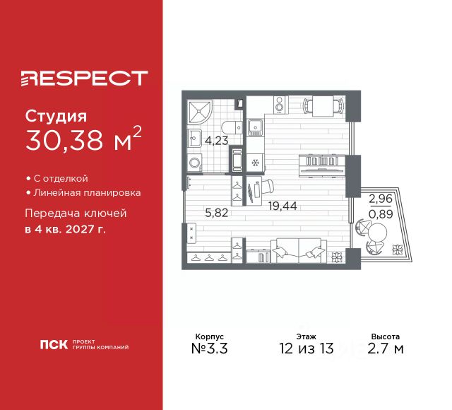 • Студии, 1-3 комнатные квартиры площадью от 21,4 м² до 32,8 м² м².