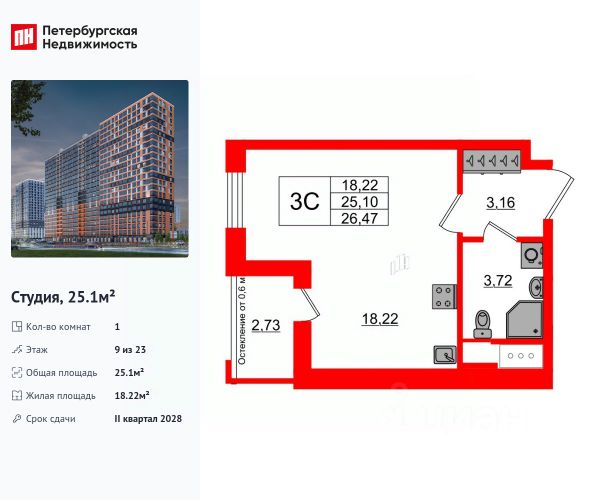 Строим кварталы для жизни с заботой о будущем. Предлагается квартира студия комфорт-класса 21,83 кв.м в корпусе 33 на 4 этаже, в ЖК "Новое Колпино"