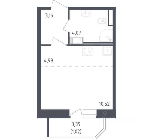 В продаже студия в корпусе 96 ЖК 'Живи! В Рыбацком'. Квартира располагается на 12 этаже, общая площадь 21.07 м2.