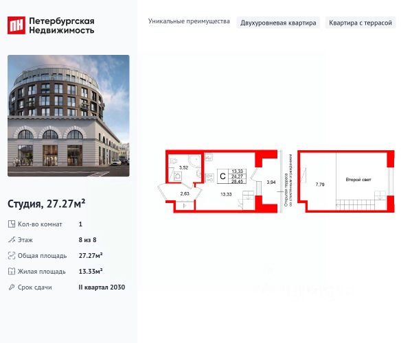Квартира 22 в корпусе Карбон проекта бизнес-класса "Башни Элемент". "Башни Элемент" новый жилой проект бизнес-класса на Васильевском острове от девелоперской компании "ELEMENТ". В его составе 5 башен, две из которых соединены первым в Санкт-Петербурге "небесным мостом" с клубной инфраструктурой. Первая линия Финского залива (южная часть намыва Васильевского острова), 80% квартир с видом на воду Футуристичная архитектура от "А.Лен" 5 разновысотных башен: КАРБОН, КУПРУМ, ТИТАН, ПЛАТИНА и ВОЛЬФРАМ (от 18 до 22 этажей) 1026 квартир от студий до 6-комнатных планировок формата "евро", в башнях ТИТАН и ПЛАТИНА 12 видовых пентхаусов Многофункциональный зал для событий, гостиная с кухонной зоной и террасой, коворкинг с "тихими" кабинетами, залы для йоги и персональных тренировок, комната для медитаций, кинозал, библиотека с гостиной и появятся в клубном пространстве "небесного моста" на площади 1000 м2 В стилобатной части проекта "ELEMENT" создаст инфраструктуру, ориентированную в том числе на поколение "альфа" IT-школу с мультимодальным обучением, образовательно-развлекательный кластер, творческие мастерские, а также семейный центр с рестораном и фитнес-клуб с 25-метровым бассейном, тренажерным залом и фитнес-зоной Ландшафтный парк со спортивными зонами, детскими площадками и местами для отдыха площадью 2600 м2 Подземный паркинг с двухуровневым хранением на 552 авто, еще 88 мест на открытой автостоянке ELEMENT создаёт инновационные жилые и коммерческие объекты в Санкт-Петербурге и Москве, которые устанавливают новые стандарты эффективной жизни в мегаполисах. Купить квартиру-студию с отделкой от застройщика в районе Василеостровский в Санкт-Петербурге.