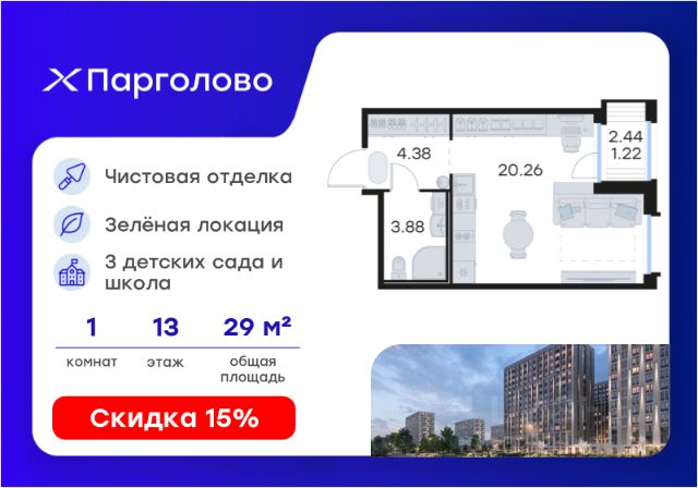 Продаётся студия в сданном доме (Корпус 3 ( Актёрский проезд, 2к2)), срок сдачи: IV-кв. 2024, общей площадью 32.8 кв.м., на 4 этаже. Жилой комплекс "Руднева 15" расположен в Выборгском районе Санкт-Петербурга, недалеко от трёх станций метро "Проспект Просвещения", "Озерки" и "Гражданский проспект".