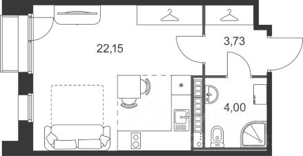 Квартира-студия с натяжными потолками, общей площадью 25,1м², жилая площадь 18,29м², прихожая - 3,80м², санузел - 3,25м²