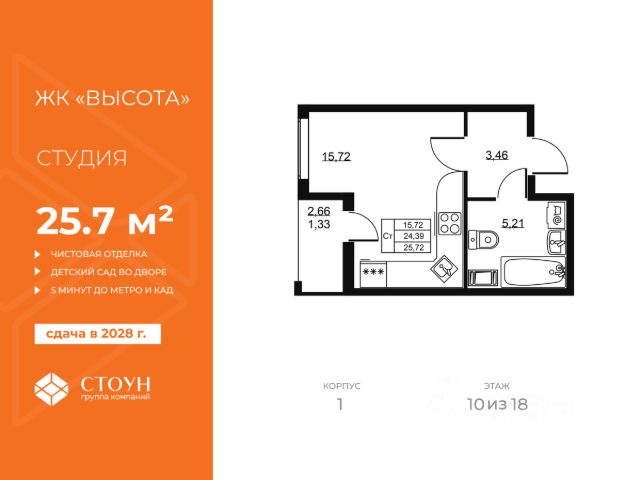 Квартиры-студии в новостройках с отделкой в поселке Бугры Всеволожского района