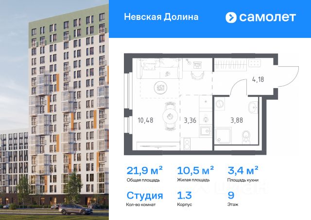 Продаётся квартира - студия от застройщика.