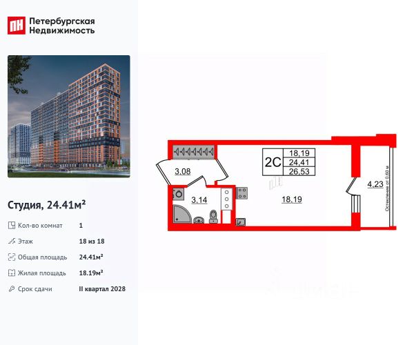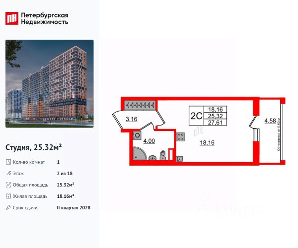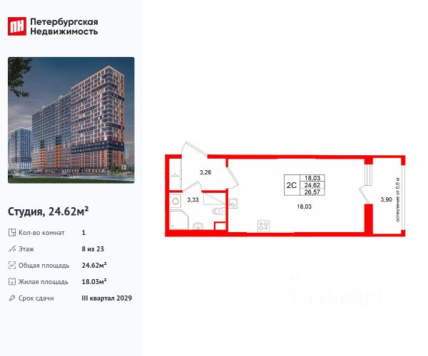 Квартира сдаётся в II квартале 2026 года.