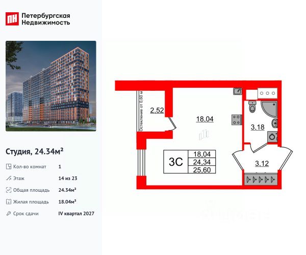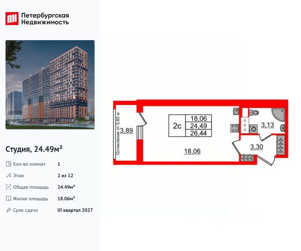 Продаётся квартира - студия от застройщика.