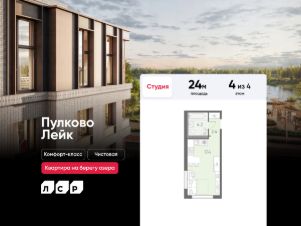 Продается студия в ЖК "Пулково Лейк" на 4 этаже. Общая площадь составляет 21.80 кв. м. Квартира с чистовой отделкой. Жилой комплекс "Пулково Лейк" располагается по адресу Санкт-Петербург, Московский. Пулково Лейк - проект малоэтажной застройки на берегу озера на границе Московского и Пушкинского районов. Дома высотой всего 4 этажа, квартиры от уютных студий до трехкомнатных квартир для большой семьи. Широчайший выбор планировок, включая квартиры с мастер-спальнями, патио, каминами, саунами, двухуровневые квартиры. Школа, детские сады, парк на берегу озера и выезды на Пулковское и Петербургское шоссе. Расположение: • 5 мин на авто до Аэропорта Пулково; • 10 мин на авто до станций метро "Московская; • 10-15 мин на авто до городов Пушкина, Павловска и Гатчины; • 20 мин на авто до центра Санкт-Петербурга. Квартиры в проекте сдаются с предчистовой и чистовой отделкой Соmfоrt Stоnе и Соmfоrt Wооd по современным стандартам - Вы можете сами выбрать отделку, подходящую именно Вам. Дома оборудованы самыми современными инженерными системами и "Умным домом". В рамках проекта будет построена современная школа на 925 мест и 2 детских сада на 160 и 240 мест, выезды на Пулковское и Петербургское шоссе, а также храм рядом со сквером "Пулковский рубеж". Общественное пространство вдоль берега озера превратится во всесезонный парк, в котором найдется место для любых активностей от пробежек, катания на САПах и велосипедах до отдыха в шезлонгах и любования закатом солнца. Зимой будет работать каток, проложен лыжный маршрут, предусмотрено место для новогодней елки и горок для детей. Для Ваших питомцев - площадка для выгула собак. Преимущества: • Высота потолков от 2,6 до 4,5 м; • Уникальные планировки; • Парк на берегу озера; • Система "Умный дом"; • Дворы без машин; • Колясочная в парадной; • Видеонаблюдение в холлах, на первом этаже, в лифтах и в паркингах. Успейте приобрести квартиру на выгодных условиях! Чтобы узнать подробности, обращайтесь за консультацией по телефону. Продам квартиру-студию с отделкой от застройщика рядом с метро Московская.