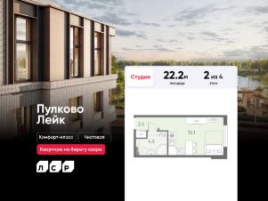 Продается студия в ЖК "Пулково Лейк" на 2 этаже. Общая площадь составляет 22.10 кв. м. Квартира с чистовой отделкой. Жилой комплекс "Пулково Лейк" располагается по адресу Санкт-Петербург, Московский. Пулково Лейк - проект малоэтажной застройки на берегу озера на границе Московского и Пушкинского районов. Дома высотой всего 4 этажа, квартиры от уютных студий до трехкомнатных квартир для большой семьи. Широчайший выбор планировок, включая квартиры с мастер-спальнями, патио, каминами, саунами, двухуровневые квартиры. Школа, детские сады, парк на берегу озера и выезды на Пулковское и Петербургское шоссе. Расположение: • 5 мин на авто до Аэропорта Пулково; • 10 мин на авто до станций метро "Московская; • 10-15 мин на авто до городов Пушкина, Павловска и Гатчины; • 20 мин на авто до центра Санкт-Петербурга. Квартиры в проекте сдаются с предчистовой и чистовой отделкой Соmfоrt Stоnе и Соmfоrt Wооd по современным стандартам - Вы можете сами выбрать отделку, подходящую именно Вам. Дома оборудованы самыми современными инженерными системами и "Умным домом". В рамках проекта будет построена современная школа на 925 мест и 2 детских сада на 160 и 240 мест, выезды на Пулковское и Петербургское шоссе, а также храм рядом со сквером "Пулковский рубеж". Общественное пространство вдоль берега озера превратится во всесезонный парк, в котором найдется место для любых активностей от пробежек, катания на САПах и велосипедах до отдыха в шезлонгах и любования закатом солнца. Зимой будет работать каток, проложен лыжный маршрут, предусмотрено место для новогодней елки и горок для детей. Для Ваших питомцев - площадка для выгула собак. Преимущества: • Высота потолков от 2,6 до 4,5 м; • Уникальные планировки; • Парк на берегу озера; • Система "Умный дом"; • Дворы без машин; • Колясочная в парадной; • Видеонаблюдение в холлах, на первом этаже, в лифтах и в паркингах. Успейте приобрести квартиру на выгодных условиях! Чтобы узнать подробности, обращайтесь за консультацией по телефону.