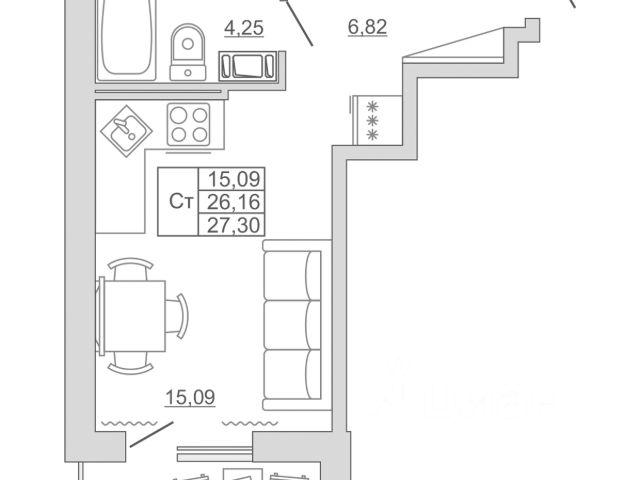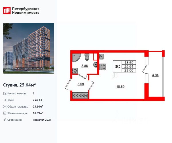 Строим кварталы для жизни с заботой о будущем. Предлагается квартира студия комфорт-класса 25,88 кв.м в корпусе 33 на 9 этаже, в ЖК "Новое Колпино"