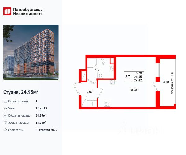 Продается студия в ЖК "Октябрьская набережная" на 3 этаже. Общая площадь составляет 21.20 кв. м. Квартира с чистовой отделкой . Жилой комплекс "Октябрьская набережная" располагается по адресу Санкт-Петербург, Невский. Октябрьская набережная - жилой комплекс на берегу Невы, который отличается живописными видами и удобным местоположением: в окрестностях ЖК есть всё необходимое для комфортной жизни. Расположение: • 2 минуты пешком до набережной Невы; • 7 минут до станции метро "Улица Дыбенко" на автомобиле; • 8 минут до Большого Обуховского моста на автомобиле; • 15 минут до ТРК "Лондон Молл" на автомобиле. Будущие жильцы могут обустроить квартиру по своему вкусу: предлагается 2 вида отделки - уютный темный "Comfort Wood" и легкий светлый "Comfort Stone". Отделка выполняется из качественных материалов: прочный ламинат с фактурой светлого дерева или белого камня, светлые обои под покраску, лаконичные межкомнатные двери. Вход в парадные расположен на уровне земли и создает доступную среду для пожилых людей, людей с ограниченными возможностями и мам с колясками. На цокольном этаже находятся кладовые, которые позволят освободить пространство квартиры от лишних вещей. Во всех парадных расположены колясочные, рядом с ними - велопарковки. На территории комплекса есть всё для любителей активного отдыха: спортивные площадки, уличные тренажеры, велодорожки, места для игры в баскетбол и волейбол. Спортсмены могут насладиться живописными видами во время пробежки вдоль набережной. В зелёных и облагороженных дворах есть всё и для семей с детьми: тематические площадки, детский сад и даже школа. Комфортная среда для питомцев - еще одно преимущество "Октябрьской набережной": рядом с домами находится площадка для выгула собак. Для удобства автомобилистов на территории комплекса устроены крытые паркинги с безопасными охраняемыми выездами и большим количеством машино-мест. В пешей доступности расположены супермаркеты, кафе, парикмахерские, отделения банков. Преимущества: • Первая береговая линия • Двор без машин • Доступная среда • Развитая инфраструктура • Школа и детский сад во дворе • Близость к метро Успейте приобрести квартиру на выгодных условиях! Чтобы узнать подробности, обращайтесь за консультацией по телефону. Продам квартиру-студию с отделкой от застройщика рядом с метро Пролетарская.