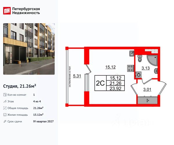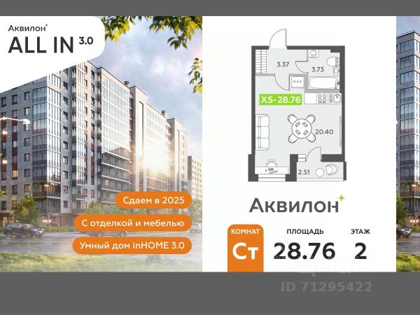 • ✓ В базе Циан 595 квартир-студий с отделкой от застройщика рядом с метро Шушары