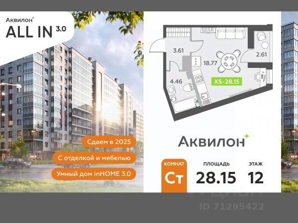 Квартиры-студии в ЖК с отделкой от застройщика рядом с метро Шушары
