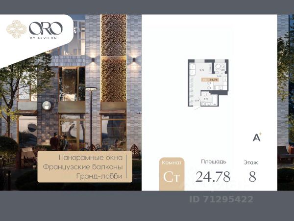 ЖК "ORO by Akvilon" - старт продаж жилого комплекса бизнес-класса в Московском районе. -Панорамные окна в пол во всех квартирах -Алюминиевые оконные профили с многокамерными стеклопакетами -Французские балконы с золотой окантовкой -Высота этажа 3,15 метра -Увеличенные дверные проемы - 2,3 метров высотой -Выделенные места для кондиционеров на каждом этаже -Фреоновые трубки заведенные в квартиру от мест установки внешних блоков кондиционеров -Дизайнерская отделка гранд-лобби с биокамином и золотыми элементами -Импортные бесшумные лифты с дизайнерской отделкой и увеличенной высотой кабины Отделка квартир Премиальная отделка в двух цветовых решениях: Beigestone и Greystone. Дозаказ для любой квартиры Стандарты Группы Аквилон для вашей комфортной жизни Thermo-S экономия на коммунальных платежах за счет дополнительно утепленных стен, кровли и цоколя. Энергоэффективные окна с селективным покрытием и аргоновым заполнением Soundstop - дополнительная шумоизоляция внутренних перегородок и межэтажных перекрытий, шумозащитные окна, малошумные лифты Light-in - в квартирах комфортный микроклимат. Многокамерные стеклопакеты сохраняют тепло зимой и отсеивают излишки излучения солнечного света летом, сохраняя прохладу в помещении. Vent-in - в каждой комнате есть клапаны индивидуальной вентиляции, которые обеспечивают приток свежего воздуха с улицы. inHOME умный дом в каждой квартире Интеллектуальная цифровая система, которая позволит дистанционно решать бытовые вопросы, управлять квартирой и экономить на оплате коммунальных услуг. В состав inHOME входят: IP-домофон, Face key, "умные" счетчики, датчики протечки, дистанционное отключение розеток, и т.д. Подземный паркинг -Лифты в каждой секции со спуском в паркинг -Отделка лифтовых холлов паркинга в стиле Гранд лобби + дизайнерская навигация самого паркинга -Возможность установки электрозарядки в паркинге или на территории ЖК -GSM усилитель в паркинге Двор -Ландшафтный дизайн с геопластикой и цветочными аркадами -Сад цветущих сезонов -Разноуровневая подсветка -Детские площадки нового поколения -Живой зелёный забор -Закрытый двор без машин Локация -7 мин. до м. Звездная -10 мин. до м. Московская -15 мин. до аэропорта Пулково -30 мин. до Невского пр. #Z6U72S