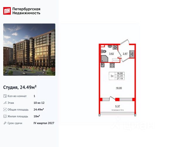 Продается просторная студия от застройщика в жилом комплексе "Setl Лофт" в престижном Московском районе. До метро можно добраться пешком всего за 25 минут. Удобная, классическая, функциональная европланировка, вместительная прихожая 2.87 м². Общая площадь студии - 24.49 м², жилая 18 м², высота потолка 2.75 м. Квартира продается с отделкой "NORD LINE SILVER ВК NEW". Что особенного в ЖК "Setl Лофт"? • Престижный Московский район. Близость к метро "Звёздная" • Архитектура в стиле лофт • Единая входная группа с авторским дизайном и лаундж-зоной • Собственный фитнес-клуб с сауной • Элементы отделки и декора из стали cor-ten на фасадах и лобби