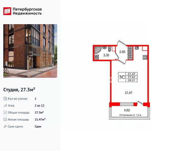 Продается студия в ЖК "Пулково Лейк" на 3 этаже. Общая площадь составляет 21.40 кв. м. Квартира с чистовой отделкой. Жилой комплекс "Пулково Лейк" располагается по адресу Санкт-Петербург, Московский. Пулково Лейк - проект малоэтажной застройки на берегу озера на границе Московского и Пушкинского районов. Дома высотой всего 4 этажа, квартиры от уютных студий до трехкомнатных квартир для большой семьи. Широчайший выбор планировок, включая квартиры с мастер-спальнями, патио, каминами, саунами, двухуровневые квартиры. Школа, детские сады, парк на берегу озера и выезды на Пулковское и Петербургское шоссе. Расположение: • 5 мин на авто до Аэропорта Пулково; • 10 мин на авто до станций метро "Московская; • 10-15 мин на авто до городов Пушкина, Павловска и Гатчины; • 20 мин на авто до центра Санкт-Петербурга. Квартиры в проекте сдаются с предчистовой и чистовой отделкой Соmfоrt Stоnе и Соmfоrt Wооd по современным стандартам - Вы можете сами выбрать отделку, подходящую именно Вам. Дома оборудованы самыми современными инженерными системами и "Умным домом". В рамках проекта будет построена современная школа на 925 мест и 2 детских сада на 160 и 240 мест, выезды на Пулковское и Петербургское шоссе, а также храм рядом со сквером "Пулковский рубеж". Общественное пространство вдоль берега озера превратится во всесезонный парк, в котором найдется место для любых активностей от пробежек, катания на САПах и велосипедах до отдыха в шезлонгах и любования закатом солнца. Зимой будет работать каток, проложен лыжный маршрут, предусмотрено место для новогодней елки и горок для детей. Для Ваших питомцев - площадка для выгула собак. Преимущества: • Высота потолков от 2,6 до 4,5 м; • Уникальные планировки; • Парк на берегу озера; • Система "Умный дом"; • Дворы без машин; • Колясочная в парадной; • Видеонаблюдение в холлах, на первом этаже, в лифтах и в паркингах. Успейте приобрести квартиру на выгодных условиях! Чтобы узнать подробности, обращайтесь за консультацией по телефону.
