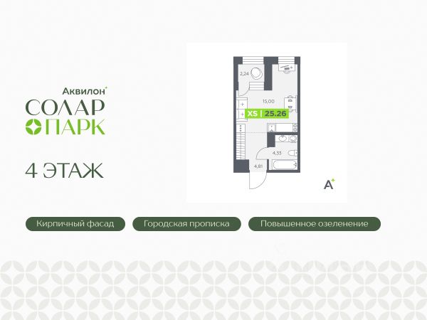 1-комн. квартира-студия от застройщика с отделкой в ЖК "Оро от Аквилон" на 2 этаже. Общая площадь: 26.24 кв.м., площадь гостиной 17.08 кв.м., из которых 5 кв.м. выделено под кухонную зону. Все окна выходят на одну сторону. В квартире одна лоджия, один совмещенный санузел. Высота потолков 2.85 м. Дом монолитный, двухподъездный, высотой 17 этажей. Квартира находится в 1-й секции в корпусе 2. На этаже 7 квартир. В подъезде 1 пассажирский и 1 грузовой лифт. Окончание строительства - 4 квартал 2027 года. Оформление сделки по договору долевого участия. В шаговой доступности от жилого комплекса расположена станция метро (расстояние по прямой) "Звёздная" (800 м), также недалеко от этого корпуса расположены станции метро: "Купчино", "Московская", "Ленинский Проспект", "Дунайская". ЖК "Оро от Аквилон" - старт продаж жилого комплекса бизнес-класса в Московском районе. -Панорамные окна в пол во всех квартирах -Алюминиевые оконные профили с многокамерными стеклопакетами -Французские балконы с золотой окантовкой -Высота этажа 3,15 метра -Увеличенные дверные проемы - 2,3 метров высотой -Выделенные места для кондиционеров на каждом этаже -Фреоновые трубки заведенные в квартиру от мест установки внешних блоков кондиционеров -Дизайнерская отделка гранд-лобби с биокамином и золотыми элементами -Импортные бесшумные лифты с дизайнерской отделкой и увеличенной высотой кабины Отделка квартир Премиальная отделка в двух цветовых решениях: Beigestone и Greystone. Дозаказ для любой квартиры Стандарты Группы Аквилон для вашей комфортной жизни Thermo-S экономия на коммунальных платежах за счет дополнительно утепленных стен, кровли и цоколя. Энергоэффективные окна с селективным покрытием и аргоновым заполнением Soundstop - дополнительная шумоизоляция внутренних перегородок и межэтажных перекрытий, шумозащитные окна, малошумные лифты Light-in - в квартирах комфортный микроклимат. Многокамерные стеклопакеты сохраняют тепло зимой и отсеивают излишки излучения солнечного света летом, сохраняя прохладу в помещении. Vent-in - в каждой комнате есть клапаны индивидуальной вентиляции, которые обеспечивают приток свежего воздуха с улицы. inHOME умный дом в каждой квартире Интеллектуальная цифровая система, которая позволит дистанционно решать бытовые вопросы, управлять квартирой и экономить на оплате коммунальных услуг. В состав inHOME входят: IP-домофон, Face key, "умные" счетчики, датчики протечки, дистанционное отключение розеток, и т.д. Подземный паркинг -Лифты в каждой секции со спуском в паркинг -Отделка лифтовых холлов паркинга в стиле Гранд лобби + дизайнерская навигация самого паркинга -Возможность установки электрозарядки в паркинге или на территории ЖК -GSM усилитель в паркинге Двор -Ландшафтный дизайн с геопластикой и цветочными аркадами -Сад цветущих сезонов -Разноуровневая подсветка -Детские площадки нового поколения -Живой зелёный забор -Закрытый двор без машин Локация -7 мин. до м. Звездная -10 мин. до м. Московская -15