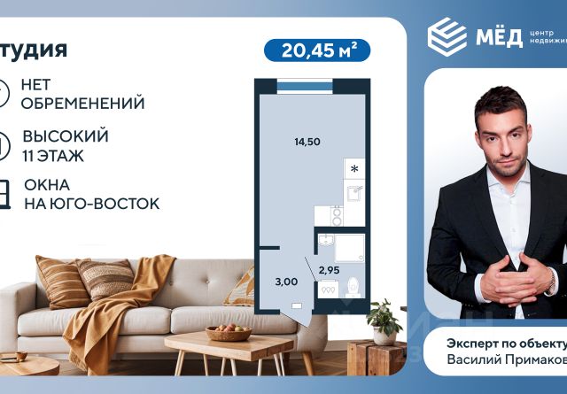 Апартаменты с отделкой в Московском районе. О лоте: - Общая площадь - 20,45 кв.м - Жилая комната - 14,5 кв.м - Санузел - 2,95 кв.м - Прихожая - 3 кв.м - 11 этаж, вид из окна на юго-восток Студия продается с чистовой отделкой от застройщика: на полу ламинат/кварцвинил, на стенах обои под покраску, в санузлах отделка кафелем, установлена сантехника. Высота потолков - 2,7 метров. Апартаменты можно приобрести как для проживания, так и для сдачи в аренду. Застройщик обещает круглосуточную службу заселения, помещения для хранения багажа, консьерж-сервис, химчистку, прачечную. О комплексе: - Апарт-комплекс Avenue-Apart Пулково - Срок передачи ключей: до сентября 2026 года - На первом этаже откроются ресторан, спортивный зал, мини-маркет и другие коммерческие объекты инфраструктуры. - Во дворе высадят деревья и растения, разместят детскую и спортивную площадки. Инфраструктура: - 5 минут пешком до ТРЦ Континент, в котором большой выбор магазинов, кафе, есть кинотеатр и фудкорт - 10 минут пешком до станции метро Звездная - 15 минут на автомобиле до аэропорта Пулково - 5 минут на автомобиле до выезда на КАД Звоните, расскажу подробнее!) О сделке: - Прямая продажа по переуступке - Ипотека возможна, обременений нет - Один взрослый дольщик - Вся цена в договоре Одобрение ипотеки, проведение сделки - бесплатно!