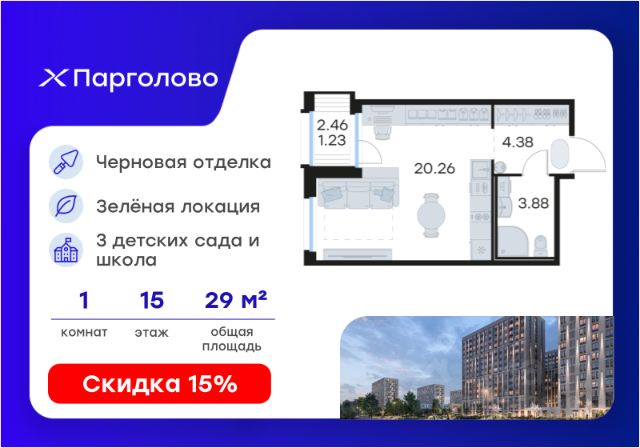 - 3 мин. до Приозерского шоссе;