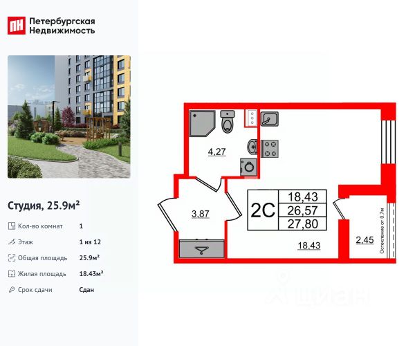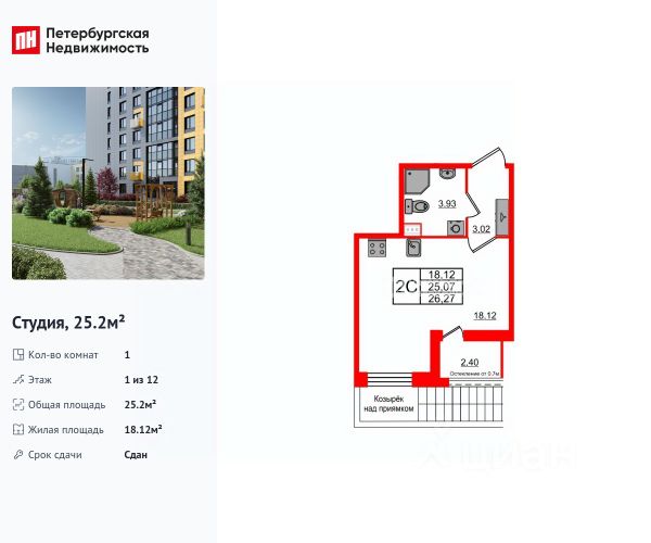 Студия с ЧИСТОВОЙ ОТДЕЛКОЙ в Приморском рaйoнe в ЖK "Бионика Заповедная"!