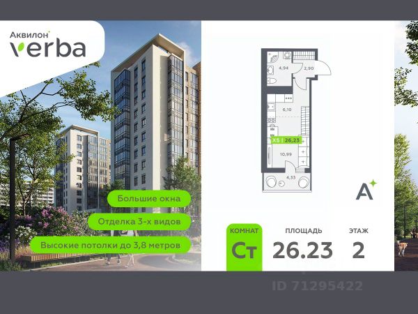 Цена действует при 100% оплате и на определенные ипотечные программы. Подробности — в отделе продаж по телефону. Продаётся студия в ЖК "Цивилизация на Неве" на 2 этаже. Общая площадь составляет 19.71 кв. м. Квартира с white box отделкой. Жилой комплекс "Цивилизация на Неве" располагается по адресу Санкт-Петербург, Невский. "Цивилизация на Неве" - видовые дома бизнес-класса, расположенные вдоль набережной Невы, всего в 7 км от исторического центра. Жилой комплекс идеально выражает особый дух, свойственный знаменитым просторным кварталам постройки сталинской эпохи в Москве и на Московском проспекте в Петербурге. Расположение: • 15 мин на авто до Невского проспекта; • 15 мин на авто до Московского вокзала; • 5 мин на авто до станции метро "Улица Дыбенко"; • 14 мин (7 км) до КАД. Уникальный дизайн входных зон, закрытая территория, видеонаблюдение и охрана, подземный паркинг с лифтом и другие особенности проекта отвечают заявленному классу. В каждом дворе предусмотрено озеленение по индивидуальному ландшафтному проекту с благородными растениями и кустарниками. Преимущества: • Закрытая территория с видеонаблюдением; • Подземный паркинг с лифтом; • Детская площадка на приватной безопасной территории; • Несколько детских садов и школ; • Инфраструктура шаговой доступности на первых этажах корпусов. Успейте приобрести квартиру на выгодных условиях! Чтобы узнать подробности, обращайтесь за консультацией по телефону.