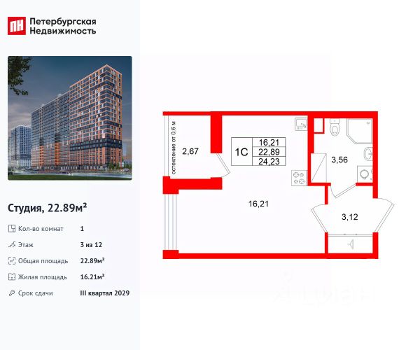 Строим кварталы для жизни с заботой о будущем. Предлагается квартира студия комфорт-класса 21,83 кв.м в корпусе 33 на 5 этаже, в ЖК "Новое Колпино"