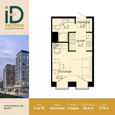 В продаже стильная эргономичная студия с готовой отделкой в эксклюзивном апарт-комплексе iD Polytech. 10-этажный дом расположен в шаговой доступности от станции метро "Политехническая" и престижного научно-образовательного кластера Политехнического университета Петра Великого. Дорога до Петроградской стороны с ее ресторанами, барами и креативными пространствами, как и до исторического центра, займет не больше 20 минут. Удобные выезды на ЗСД и КАД позволят свободно и быстро доехать до крупнейших моллов, аэропорта и живописного пригорода - Пушкино, Петергофа, Кронштадт, Зеленогорск. iD Polytech - идеальный вариант как для постоянного проживания, так и для временного размещения и сдачи в аренду туристам. Завершение строительства запланировано на 2 квартал 2026 года. Продам квартиру-студию в новостройке в округе Светлановское в Санкт-Петербурге.