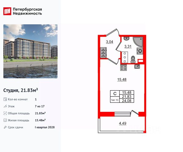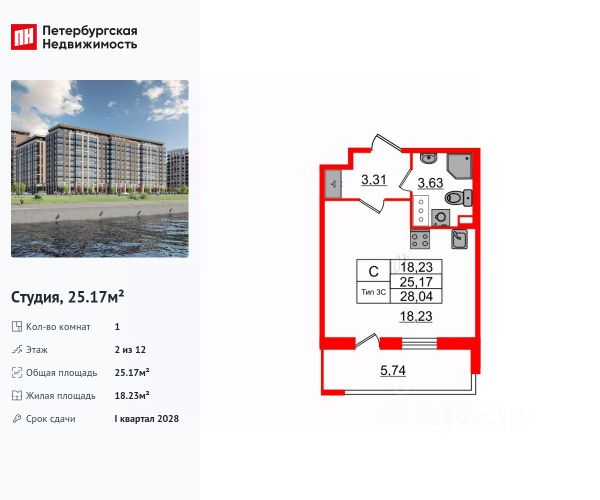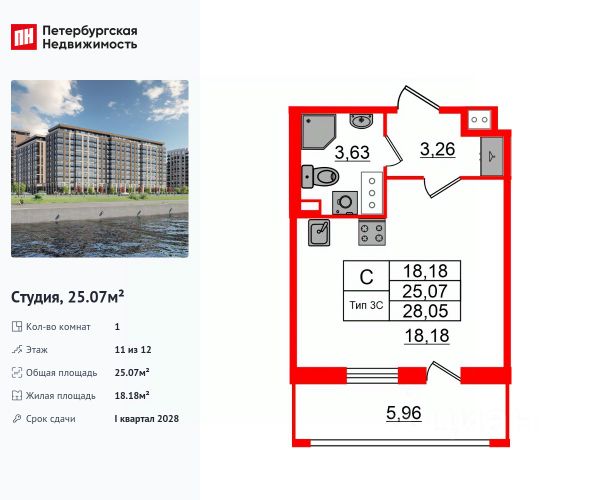 Продается просторная студия от застройщика в жилом комплексе "Сэтл Ривьера" в активно развивающимся Невском районе. До метро можно добраться на транспорте всего за 10 минут. Удобная, классическая, функциональная европланировка, просторная прихожая 3.69 м². Общая площадь студии - 25.52 м², жилая 18.32 м², высота потолка 2.77 м. Квартира продается с отделкой "Норд Лайн серый плюс". Что особенного в ЖК "Сэтл Ривьера"? • Первая береговая линия Невы. 5 км до центра Петербурга • "Активити парк" - пространство для занятий спортом и отдыха. "Ривьера парк" с променадом и панорамной ротондой • Масштабные дворы 10 000 кв.м. с авторским ландшафтным дизайном • Двухуровневые единые входные группы • Видовые квартиры с террасами, каминами и саунами Продается квартира-студия в новостройке на набережной Октябрьская в Санкт-Петербурге.