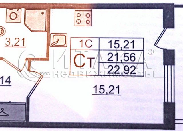 Отличная планировка: общая площадь студии (с учетом площади балкона) - 28,94 м2, комната 18.18 м2, застекленный балкон площадью 4,32м2, вместительная прихожая 3.36 м2, санузел 3,08 м2, высота потолка 3.07 м.