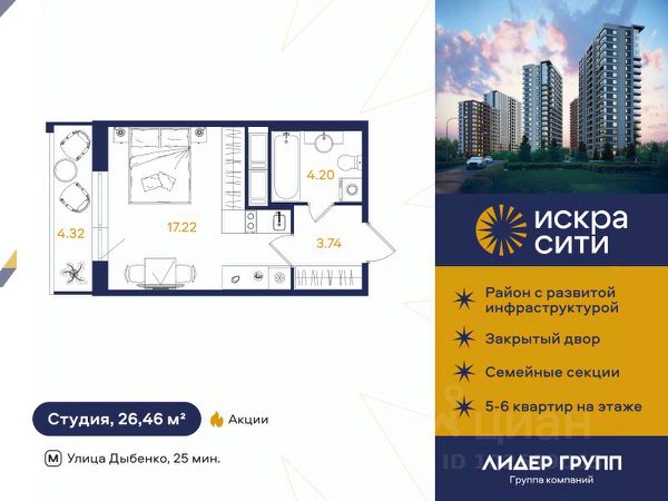 - В 15-20 минутах пешей доступности находится станция метро Дыбенко.