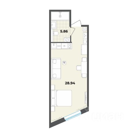 Продаётся студия-апартаменты в строящемся доме (Дом 127), срок сдачи: II-кв. 2026, общей площадью 34.8 кв.м., на 2 этаже. Апарт-отель "Лиговский, 127" от застройщика "ВК ЛОГИСТИК".
