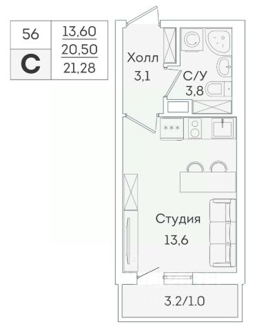 Продаётся квартира-студия площадью 20,9 кв.м на 2 этаже 15 этажного дома (Корпус 4, Секция 1) проекта ПИК Янинский лес. Светлый просторный подъезд на уровне земли, функциональная планировка, большие окна, c отделкой. Жилой квартал "Янинский лес" возводится в районе Янино-1 Ленинградской области. Автобусная остановка находится в 3 минутах пешком. Проект расположен вплотную к восточной границе Санкт-Петербурга - в 4 минутах от КАД. До метро "Ладожская" - 23 минуты на общественном транспорте. До исторического центра города можно доехать за 25 минут на автомобиле. "Янинский лес" - масштабный проект из 32 жилых корпусов, где будет всё для комфортной жизни. Здесь предусмотрены надземные паркинги, откроются детские сады, школа и поликлиника. Кроме этого, появятся места, в которых можно проводить свободное время: ледовая арена и торговый центр площадью больше 3000 м². Жилой район строится по всем правилам ПИК-Стандарта: в зелёных дворах-парках появятся современные детские и спортивные площадки, пешеходный бульвар и другие места для отдыха. На первых этажах разместятся магазины, кафе и другие сервисы. Во дворах не будет автомобилей, а для гостей предусмотрены парковочные места. Проект окружают лесные массивы. В пешей доступности находится Ржевский лесопарк: летом там можно гулять и собирать грибы, а зимой кататься на лыжах. Также рядом расположен памятник природы Колтушские высоты - парк с обустроенными экотропами и веломаршрутом. А главное место притяжения местных жителей - озеро с обустроенным местом для пикников. Артикул 1049665 (Застройщик ООО "СПЕЦИАЛИЗИРОВАННЫЙ ЗАСТРОЙЩИК"ЭКСТРАГРАД") [cn_sbp_1842420] Продам квартиру-студию от застройщика в Ленинградской области.