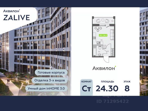 Квартира 330 в корпусе Cuprum проекта бизнес-класса "BASHNI ELEMENT" "BASHNI ELEMENT" новый жилой проект бизнес-класса на Васильевском острове от девелоперской компании "ELEMENТ". В его составе 5 башен, две из которых соединены первым в Санкт-Петербурге "небесным мостом" с клубной инфраструктурой. " Первая линия Финского залива (южная часть намыва Васильевского острова), 80% квартир с видом на воду Футуристичная архитектура от "А.Лен" 5 разновысотных башен: CARBON, CUPRUM, TITAN, PLATINA и WOLFRAM (от 18 до 22 этажей) 1026 квартир от студий до 6-комнатных планировок формата "евро", в башнях TITAN и PLATINA 12 видовых пентхаусов Многофункциональный зал для событий, гостиная с кухонной зоной и террасой, коворкинг с "тихими" кабинетами, залы для йоги и персональных тренировок, комната для медитаций, кинозал, библиотека с гостиной и появятся в клубном пространстве "небесного моста" на площади 1000 м2 В стилобатной части проекта "ELEMENT" создаст инфраструктуру, ориентированную в том числе на поколение "альфа" IT-школу с мультимодальным обучением, образовательно-развлекательный кластер, творческие мастерские, а также семейный центр с рестораном и фитнес-клуб с 25-метровым бассейном, тренажерным залом и фитнес-зоной Ландшафтный парк со спортивными зонами, детскими площадками и местами для отдыха площадью 2600 м2 Подземный паркинг с двухуровневым хранением на 552 авто, еще 88 мест на открытой автостоянке ELEMENT создаёт инновационные жилые и коммерческие объекты в Санкт-Петербурге и Москве, которые устанавливают новые стандарты эффективной жизни в мегаполисах. Продам квартиру-студию от застройщика на бульваре Головнина в Санкт-Петербурге.
